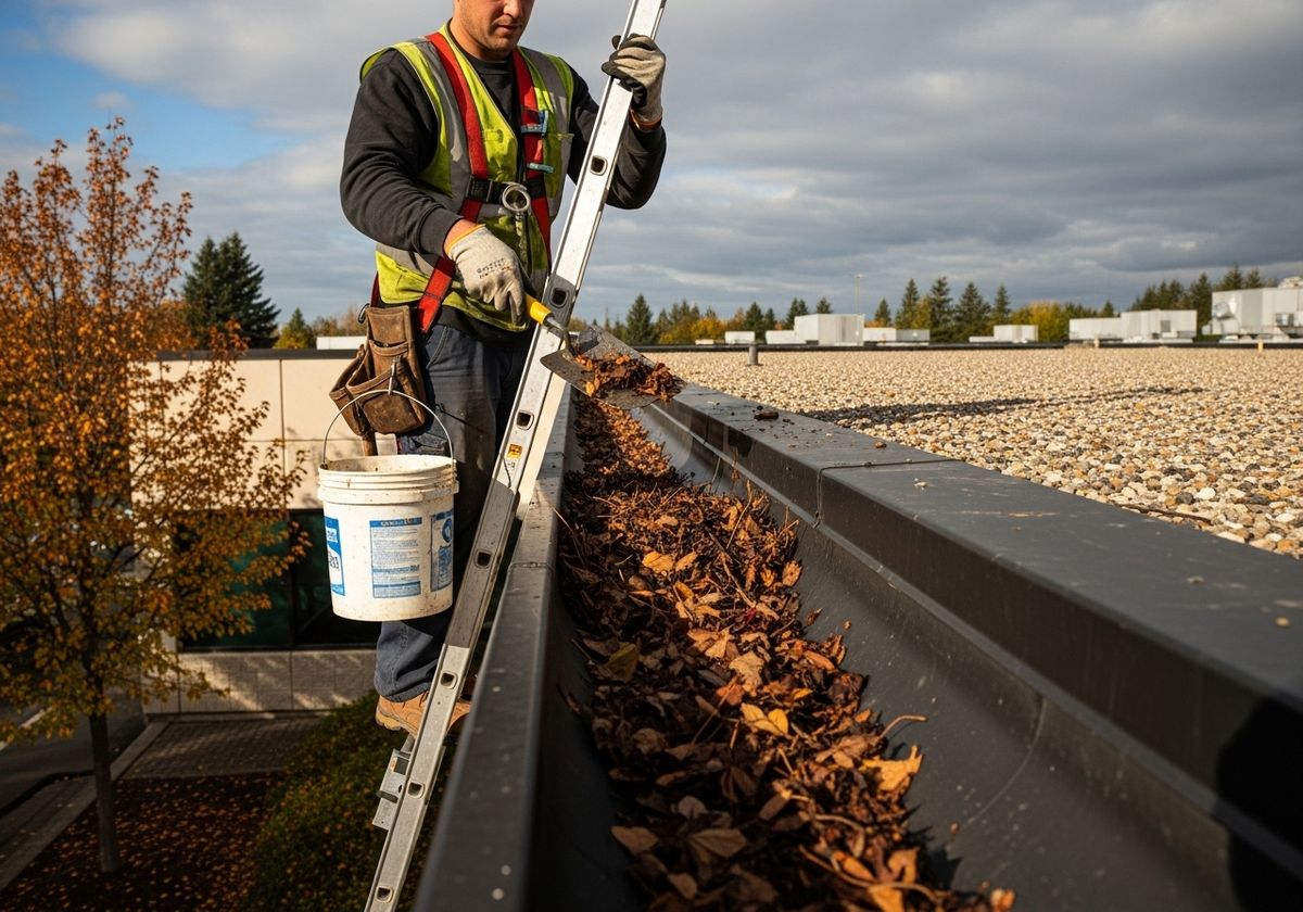 Ensure that gutters and drains are free of obstructions. Clogged gutters can cause water to back up onto the roof, leading to leaks and water damage. Regularly clean out gutters and downspouts to maintain proper water flow away from the building.