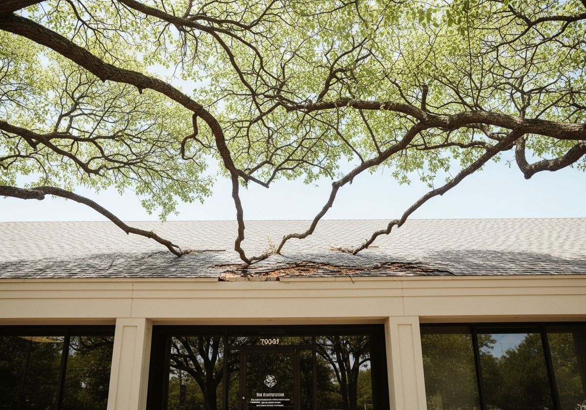 Trim any overhanging trees to prevent branches from falling on the roof and causing damage. Tree branches can also rub against the roof surface, wearing away protective coatings and causing premature deterioration.